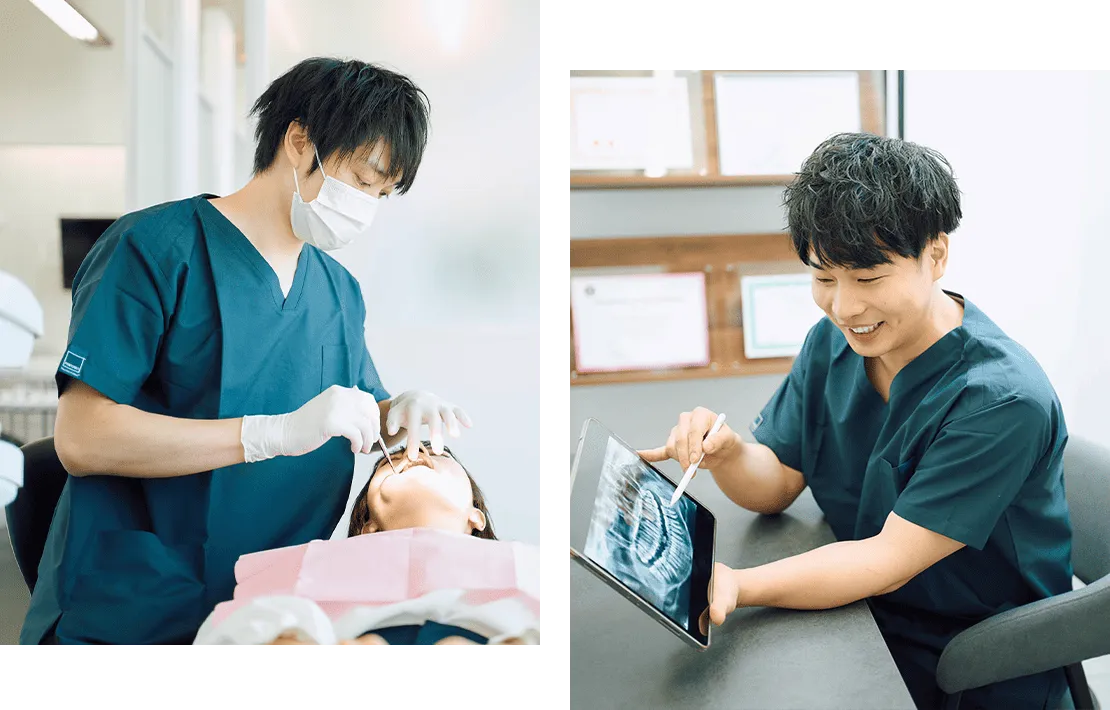 当院には複数の歯科医師が在籍し、それぞれが異なる分野で専門性を磨いています。また、東京科学大学教授の特別診療も行っています。