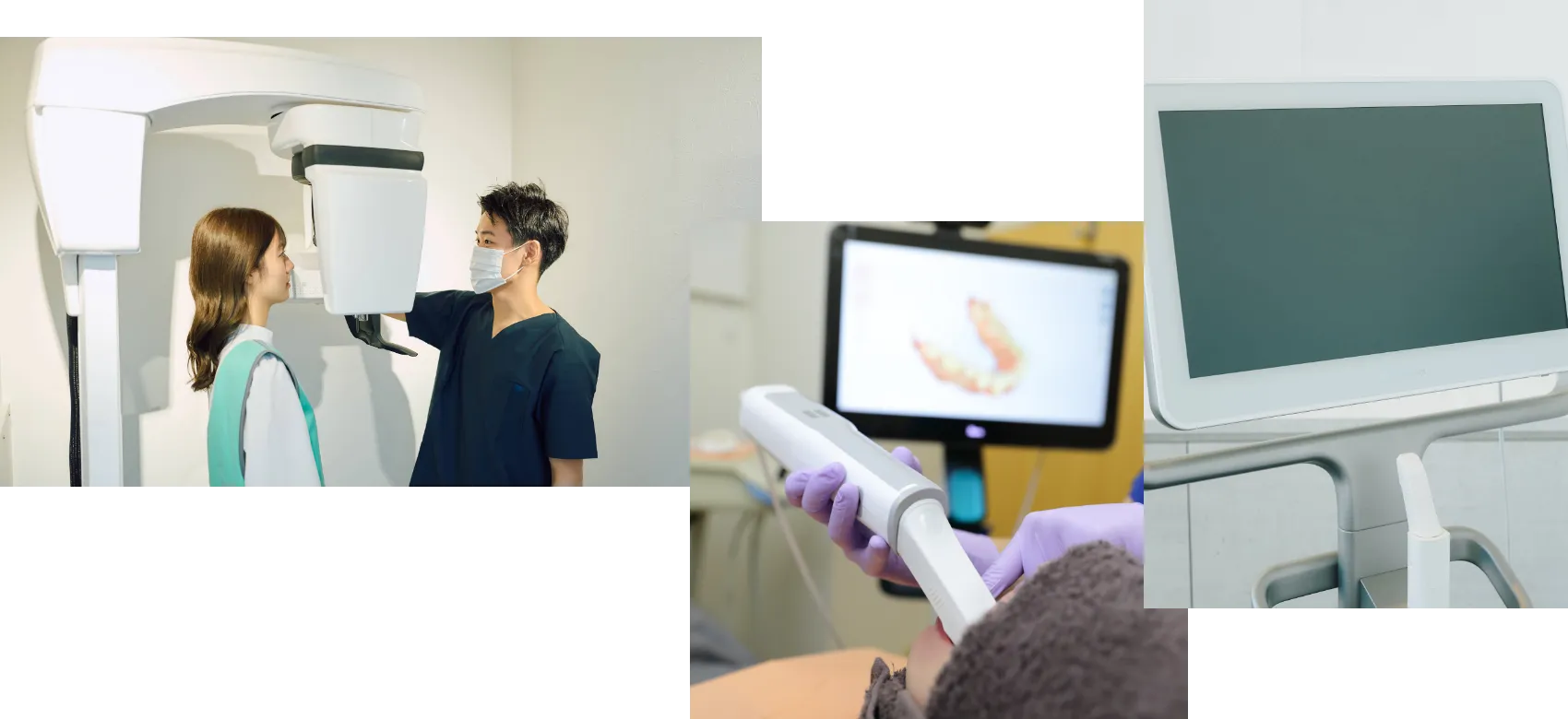 マイクロスコープによる拡大視野での確認、口腔内スキャナーによるデジタルデータ取得、歯科用3DCTによる立体的な診断など、人の技術と機器を組み合わせた治療を行います。