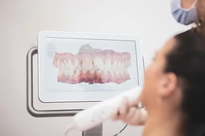 口腔内スキャナーは、歯型をデジタルデータとして取得できる機器です。患者さまの負担が少なく、短時間で精密なデータ取得が可能です。矯正治療や被せ物の作製に使用します。