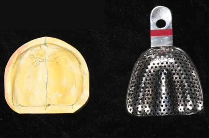 ①一般的な既成トレーを用いた型採り
