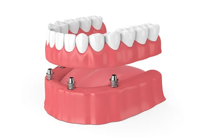 インプラントオーバーデンチャーは、顎の骨に埋入した人工歯根(インプラント)を支えとして入れ歯を安定させる治療法です。入れ歯のズレや浮き上がりを抑え、よりしっかり噛めるようになることが期待できます。