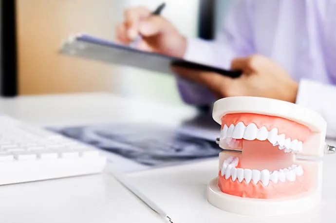 型採りを行い、仮歯を装着します。仮歯の段階でも、できる限り自然で美しい仕上がりになるよう製作します。