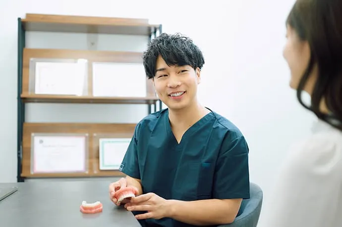 A.治療内容やお口の状態によって異なりますが、症例によっては1日で見た目を大きく改善することが可能です。最終的な被せ物の完成までには一定期間が必要な場合もありますが、短期間で仮歯まで仕上げることで、日常生活や大切な予定に支障が出にくい治療をご提案しています。