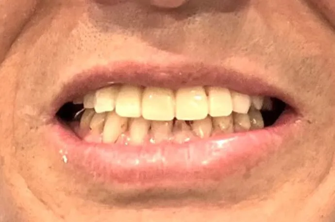 | 治療期間・回数 | 2回の治療で審美的な仮歯の状態まで改善。最終的な被せ物装着まで約8か月 |